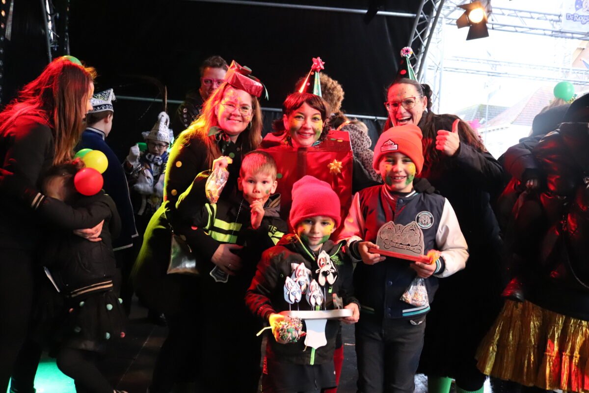 Al di-j wichter, di-j mej dieëje aan eure eige optocht, haaje gelök mét 't waer. Ze koeëme druuëg aan beej 't podium, woeë det ze as beloeëning 'ne snuikbuul én ouch nog 'n herinneringsmedalie krieëge. Det waas nao aafloup van 'ne optocht, woeë dejje as pebliek allein mer kosj geneête van al di-j bli-j gezichtjes inne stoet. Want det waas de beloeëning vör de minse langs de kânt. Mer 't ging um mieër dan wat snuik en 'n medalie. Det blieëk waal beej de prieësuitreiking.